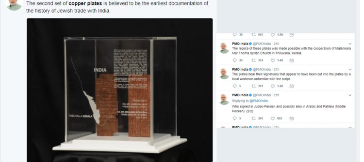 Malankara Mar Thoma Syrian Church is proud and honored as Sri. Narendra Modi, the Prime Minister of India presented the replica of the historical Copper Plates to Mr. Benjamin Netanyahu, the Prime Minister of Israel as a mark of remembrance and recollection of the historical relationship between two nations.